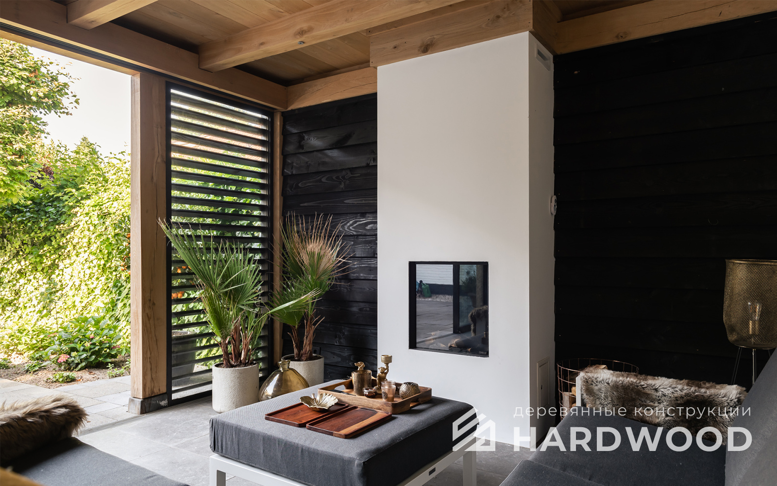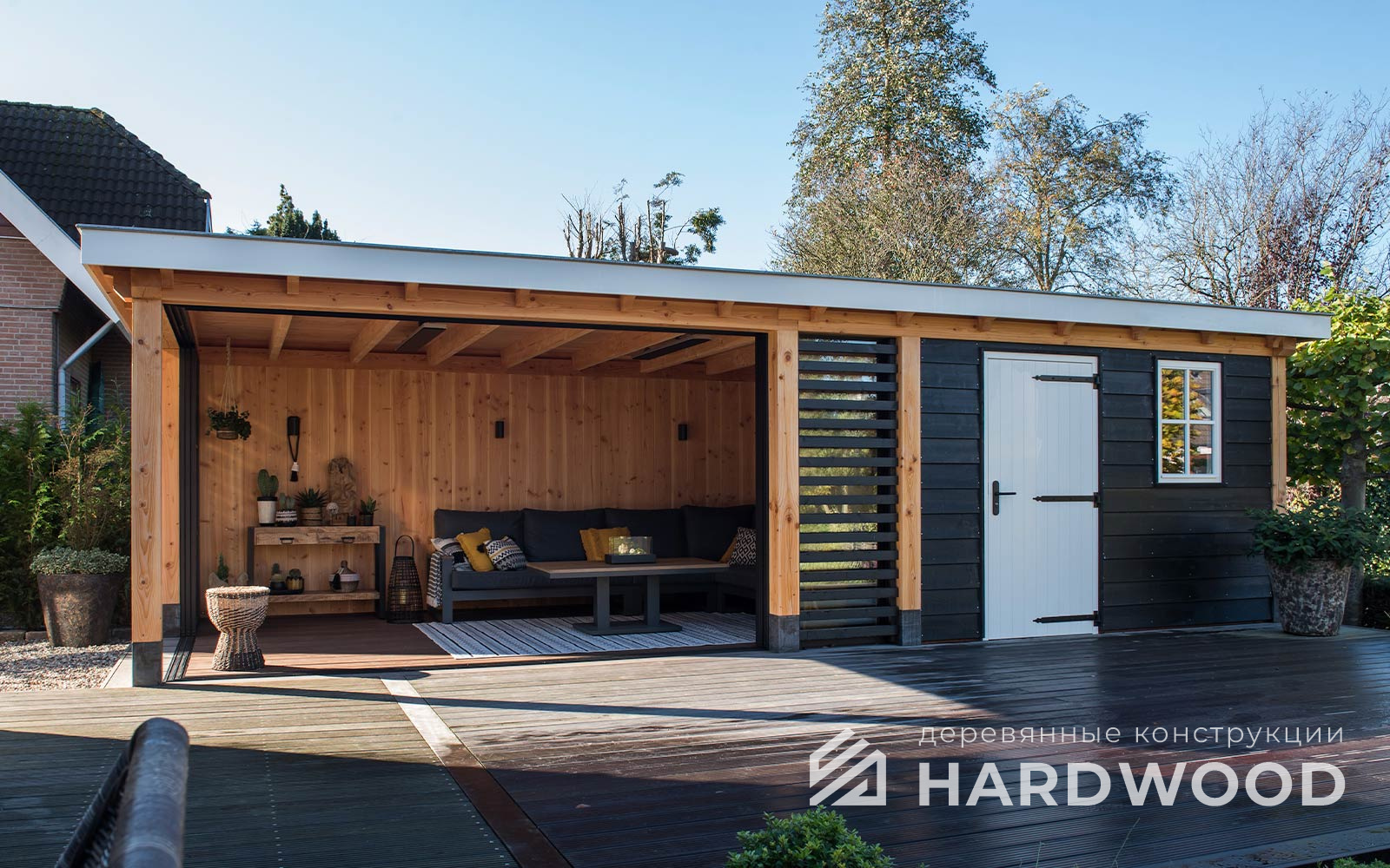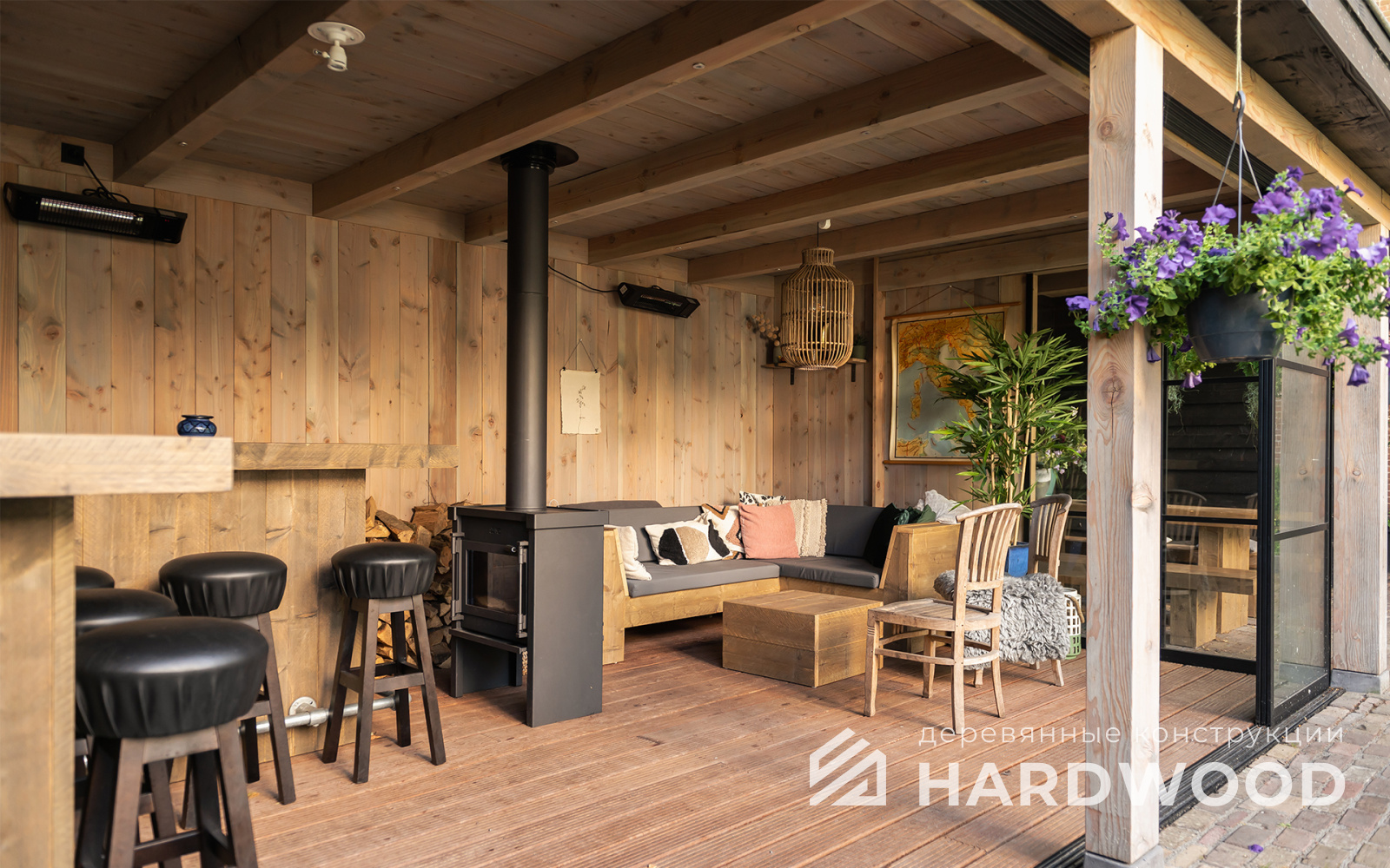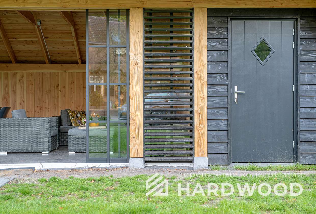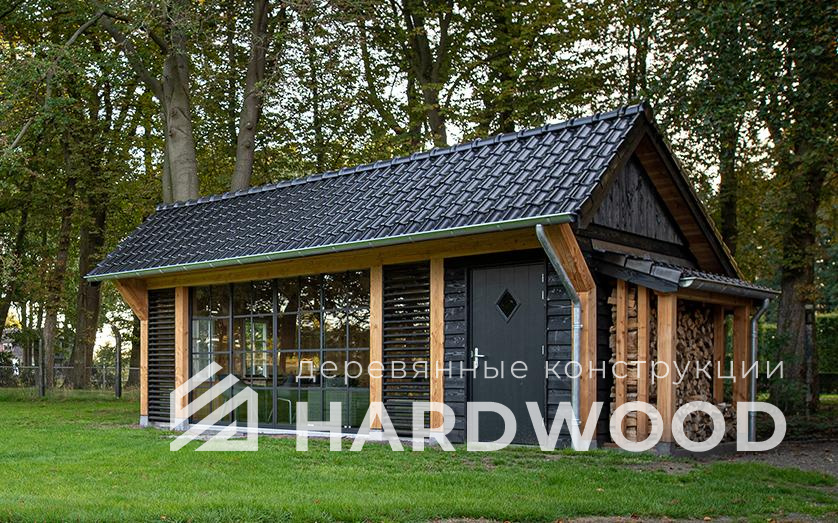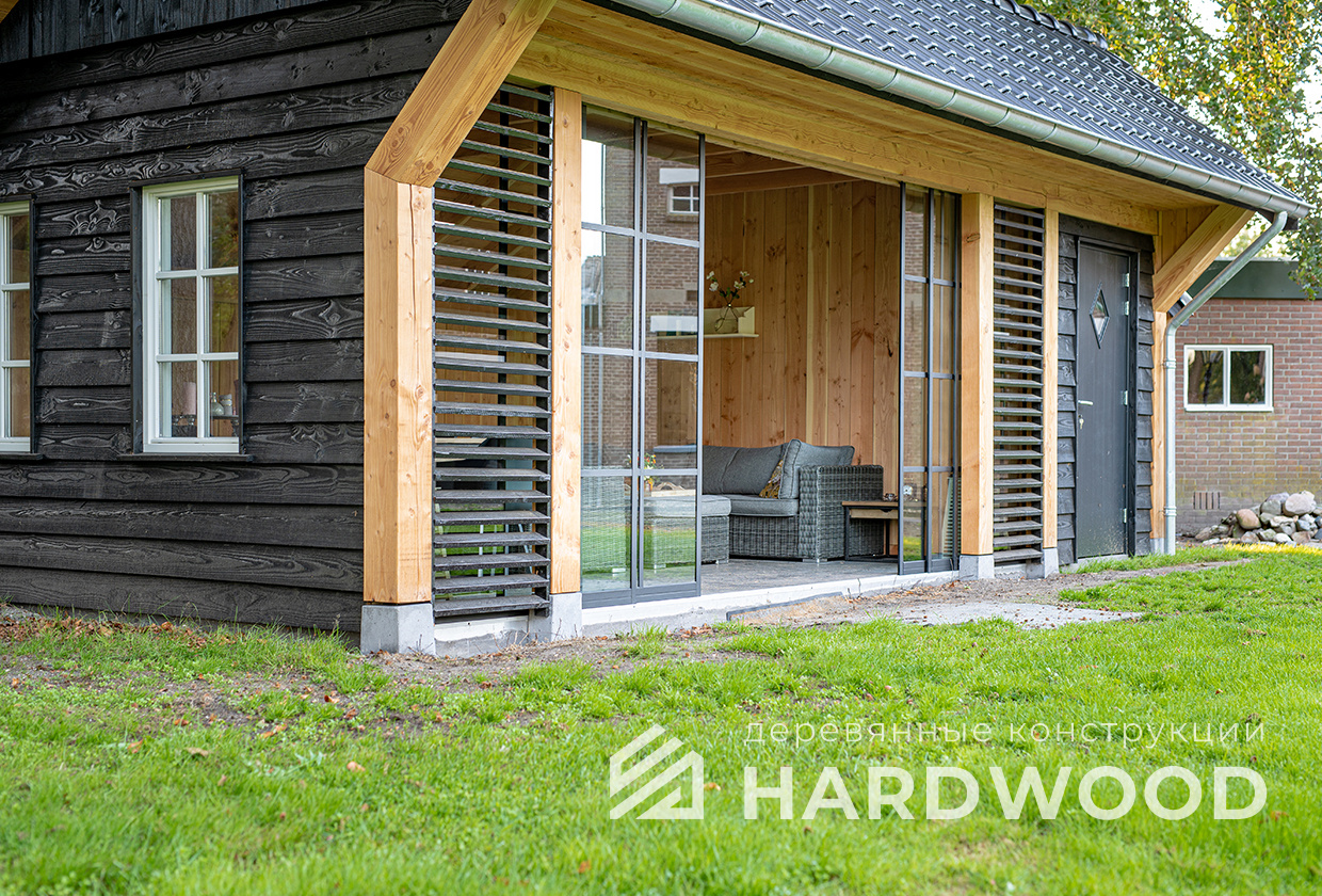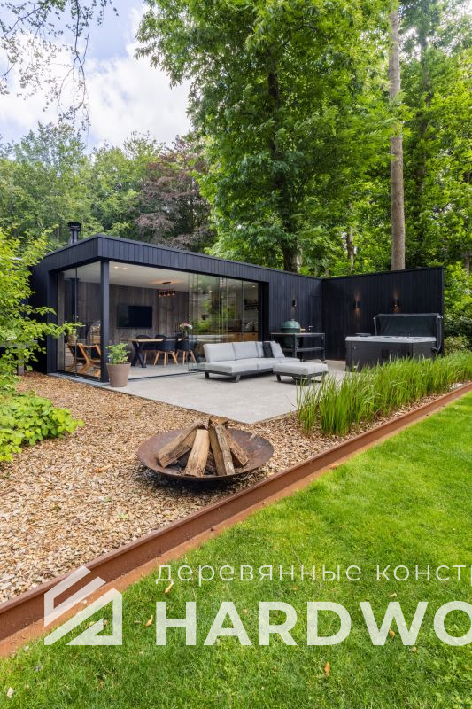 Определитесь с конструкцией и материалами. Для силуэта лофт характерны односкатные или плоские кровли, контраст дерева и металла, минималистичная обрешётка. Если важен всесезонный комфорт — подумайте о частичном остеклении, ветрозащите и подсветке; для летнего формата достаточно открытого павильона с навесом.