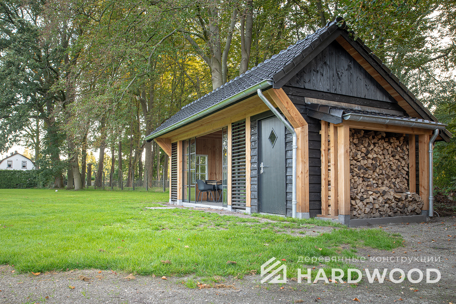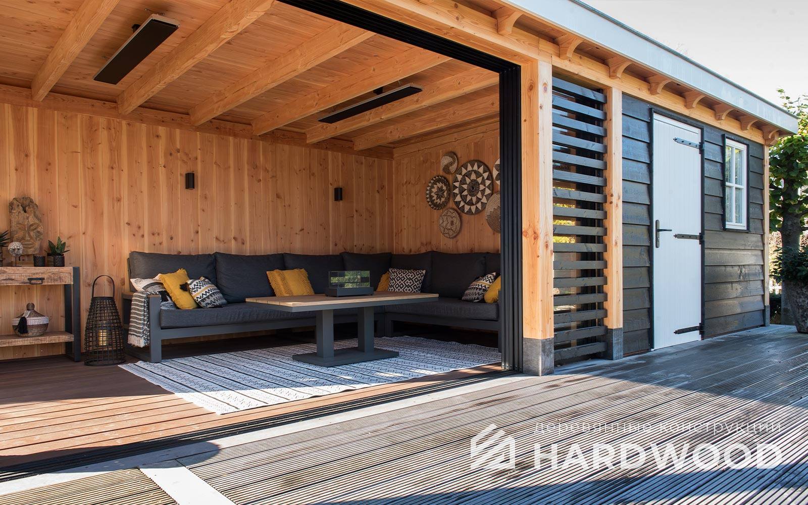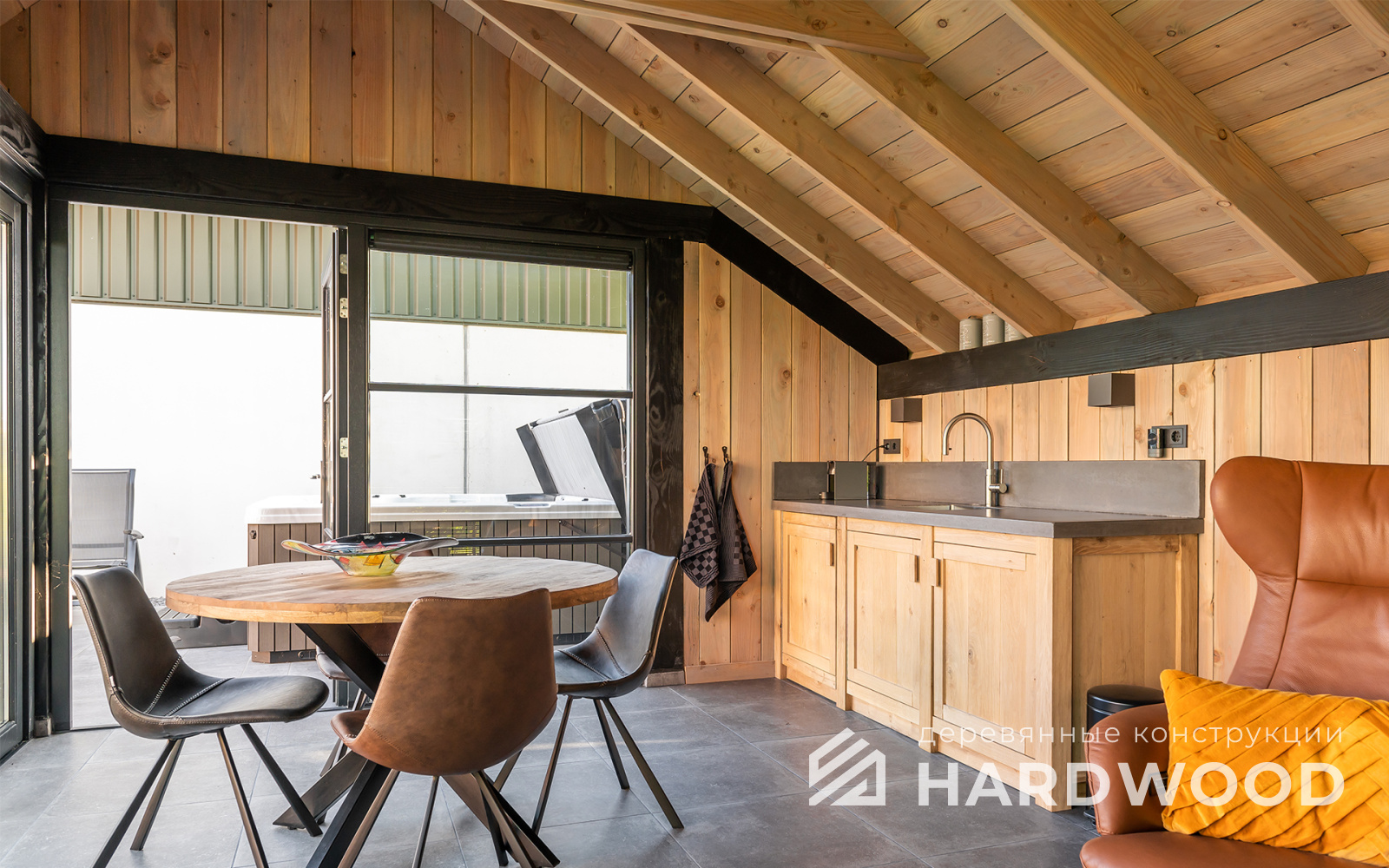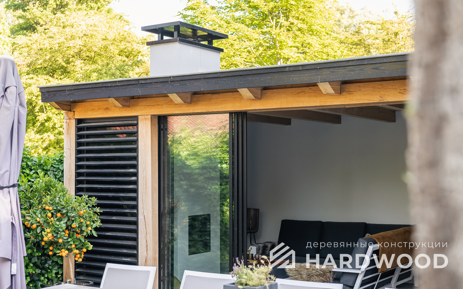 Определитесь с конструкцией и материалами. Для силуэта лофт характерны односкатные или плоские кровли, контраст дерева и металла, минималистичная обрешётка. Если важен всесезонный комфорт — подумайте о частичном остеклении, ветрозащите и подсветке; для летнего формата достаточно открытого павильона с навесом.