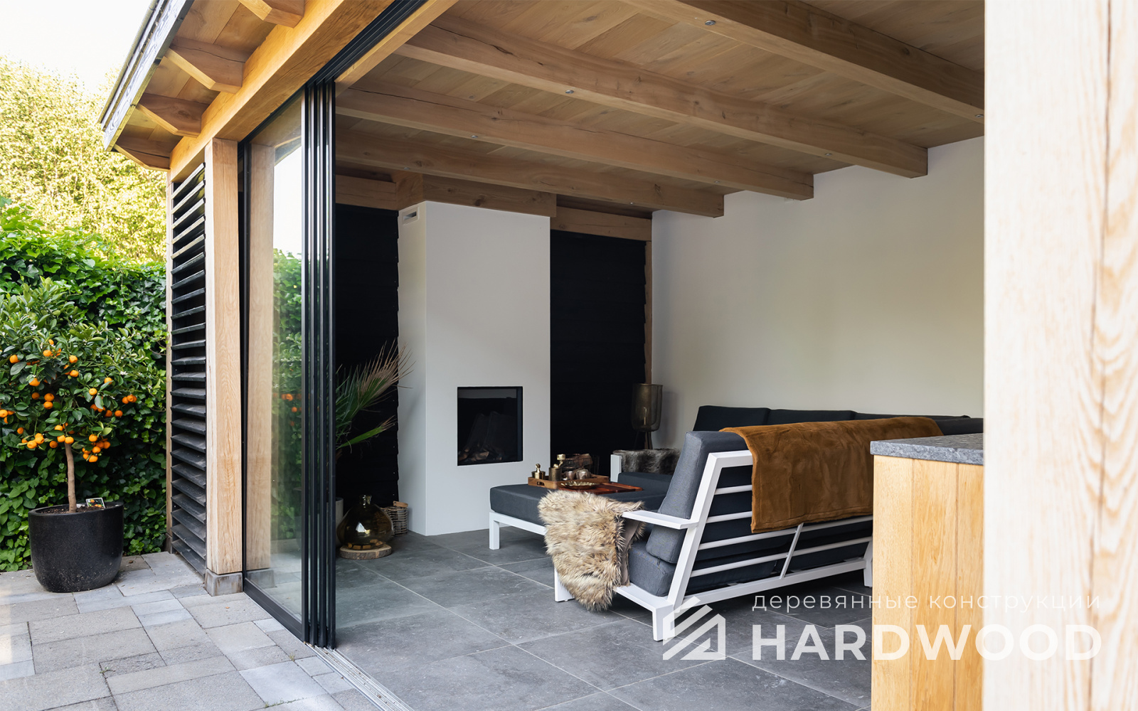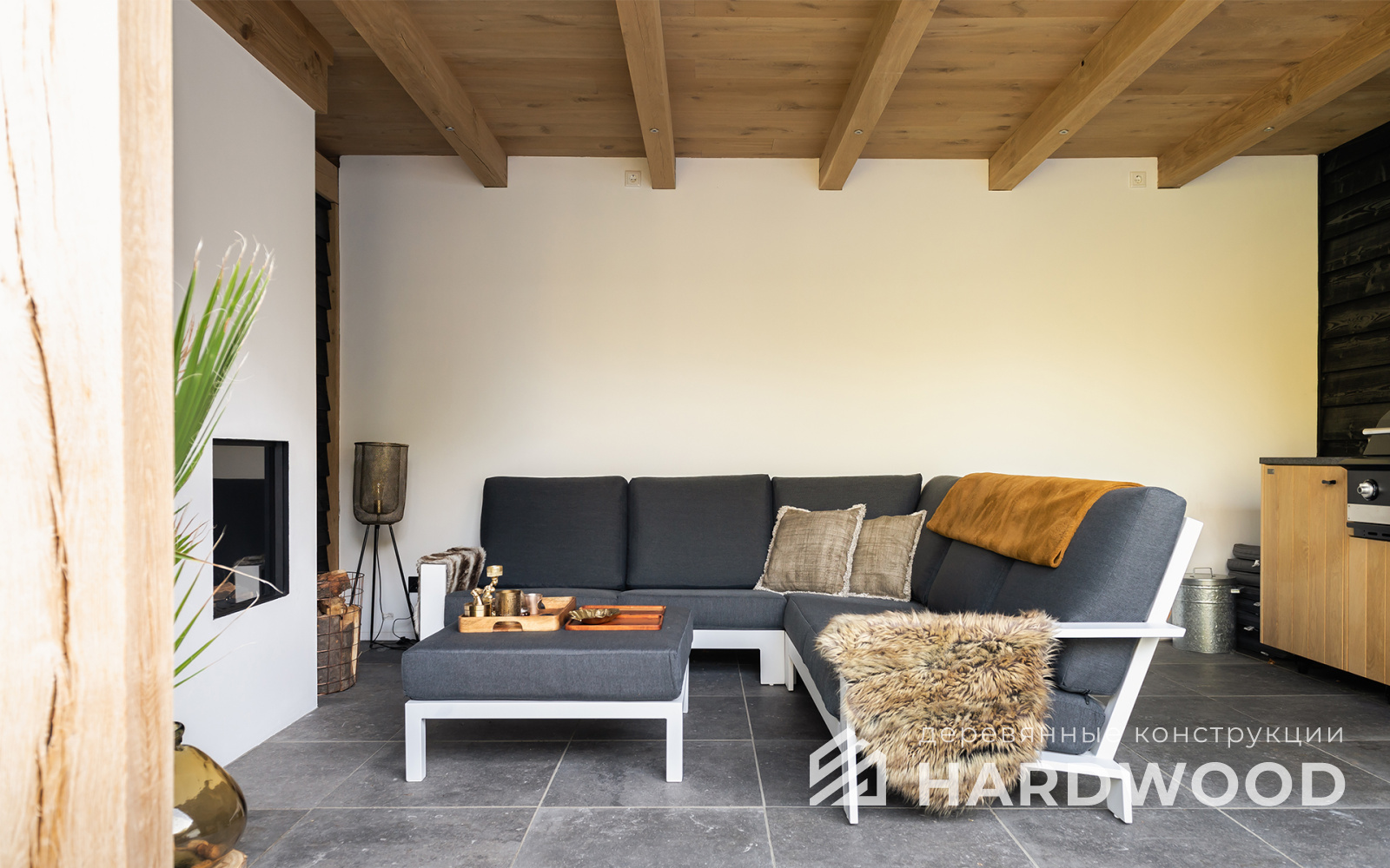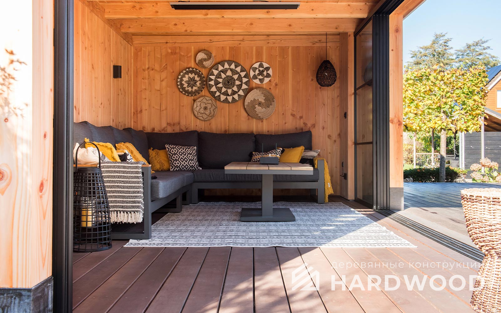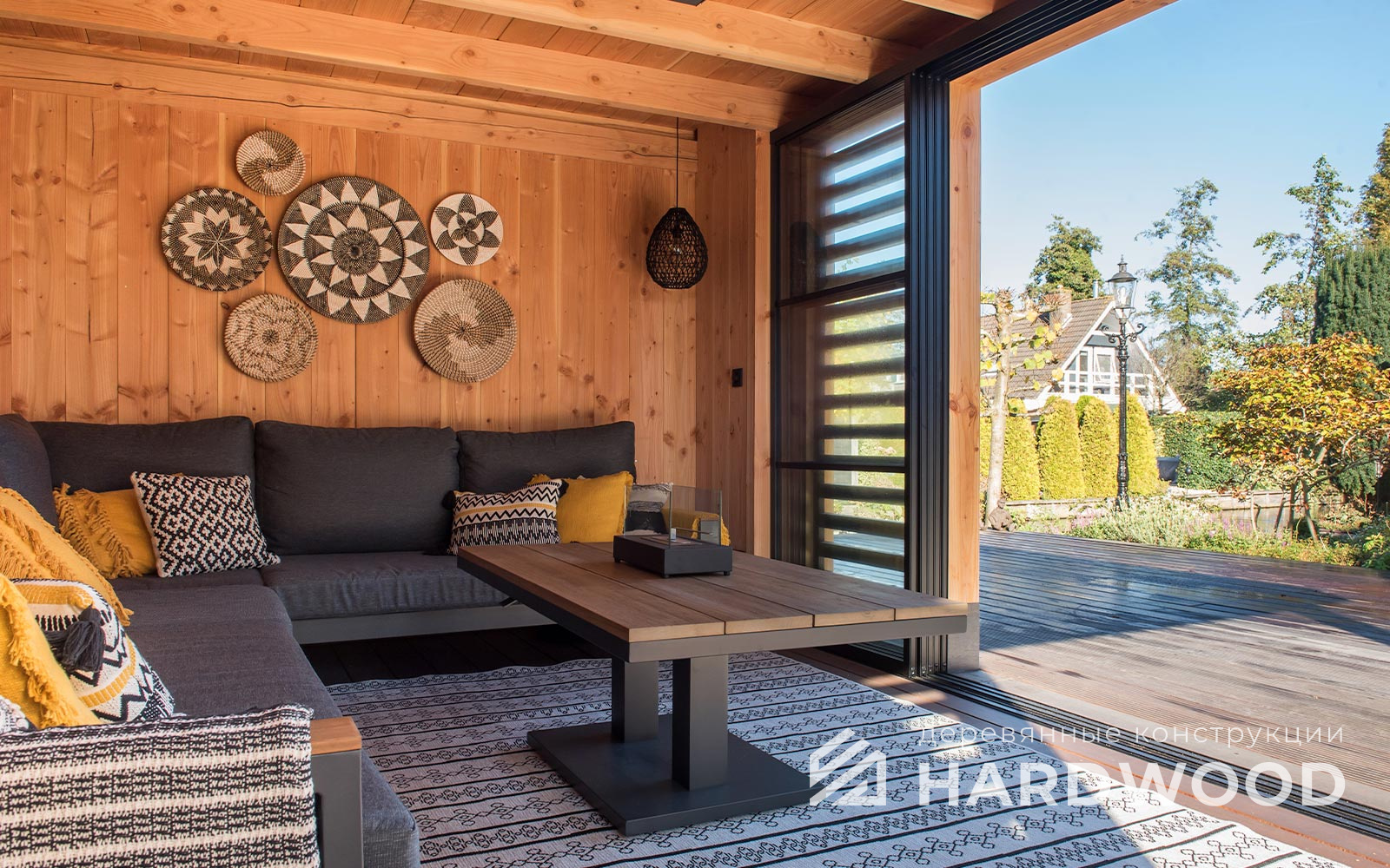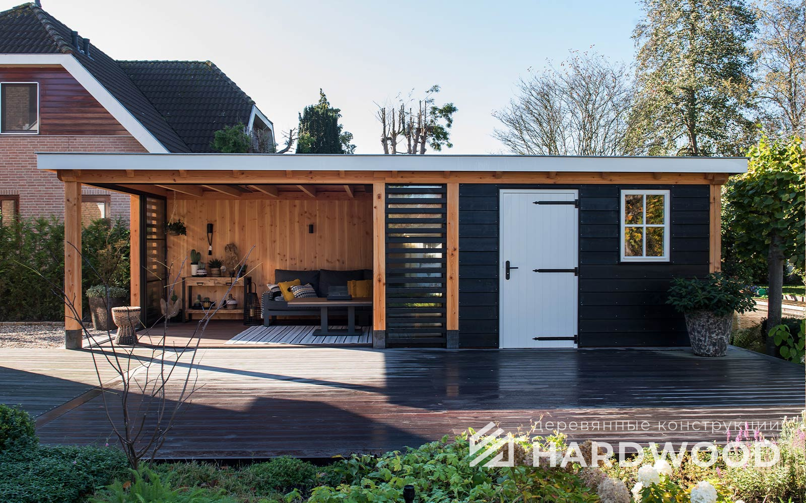 Определитесь с конструкцией и материалами. Для силуэта лофт характерны односкатные или плоские кровли, контраст дерева и металла, минималистичная обрешётка. Если важен всесезонный комфорт — подумайте о частичном остеклении, ветрозащите и подсветке; для летнего формата достаточно открытого павильона с навесом.