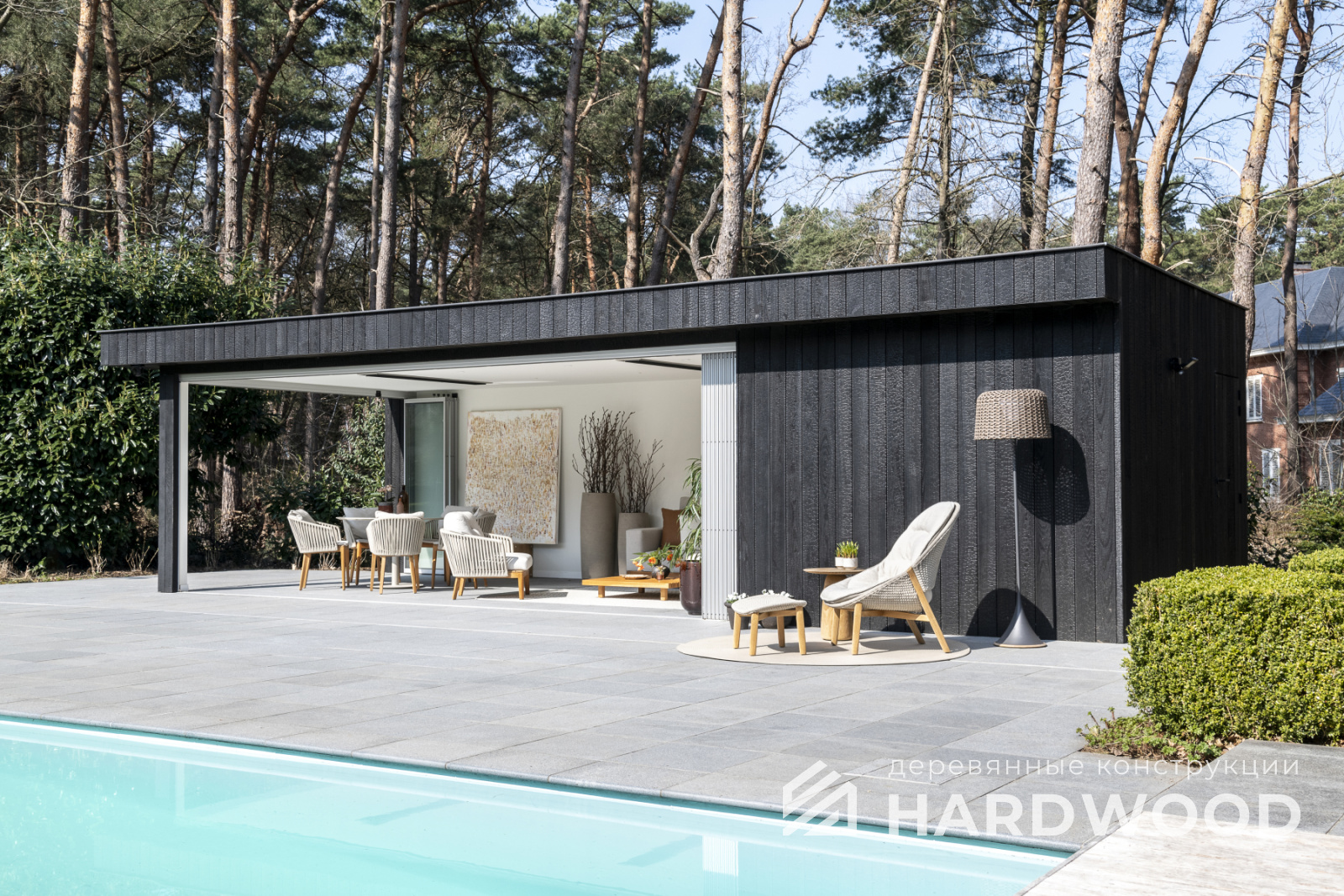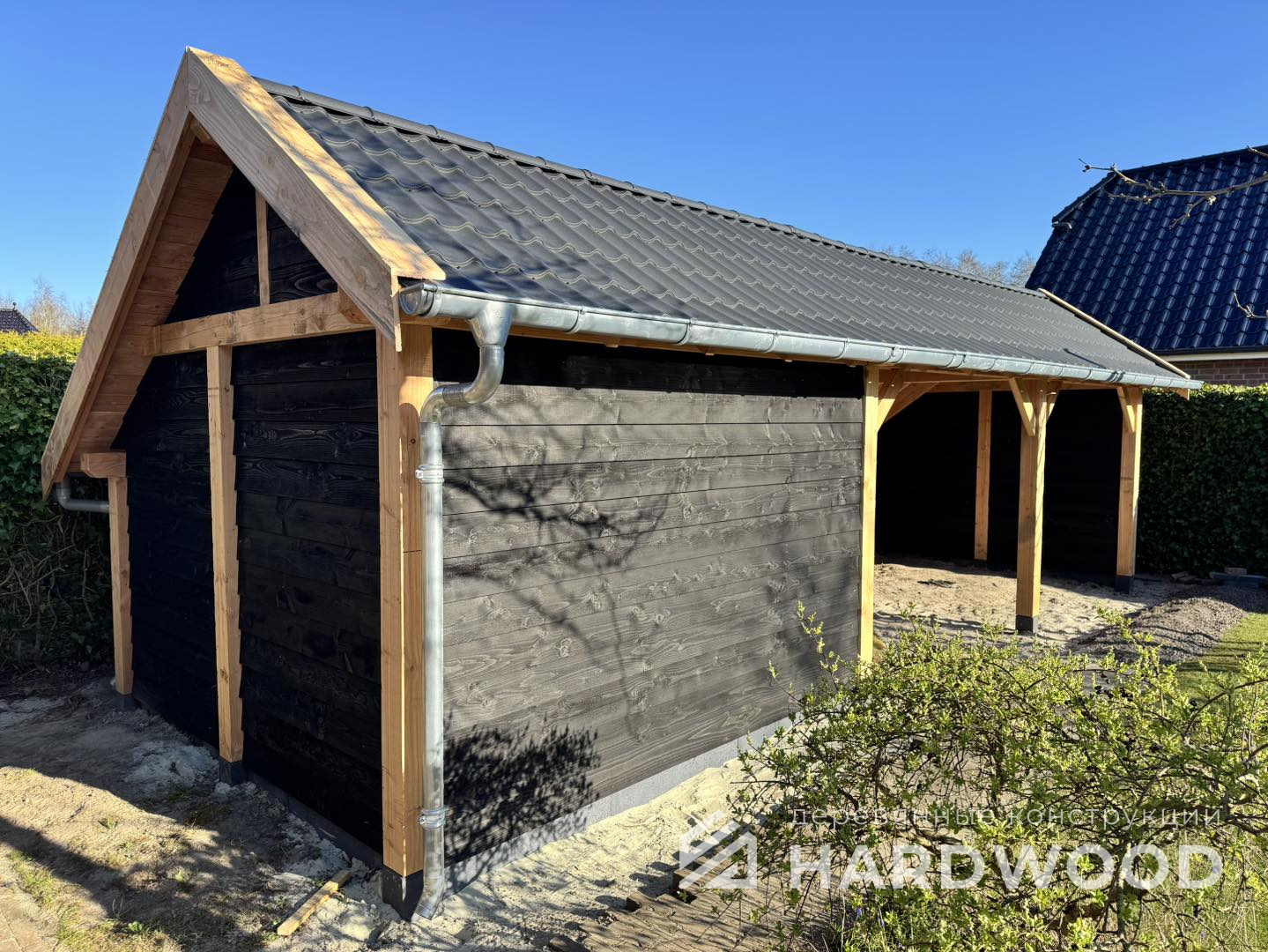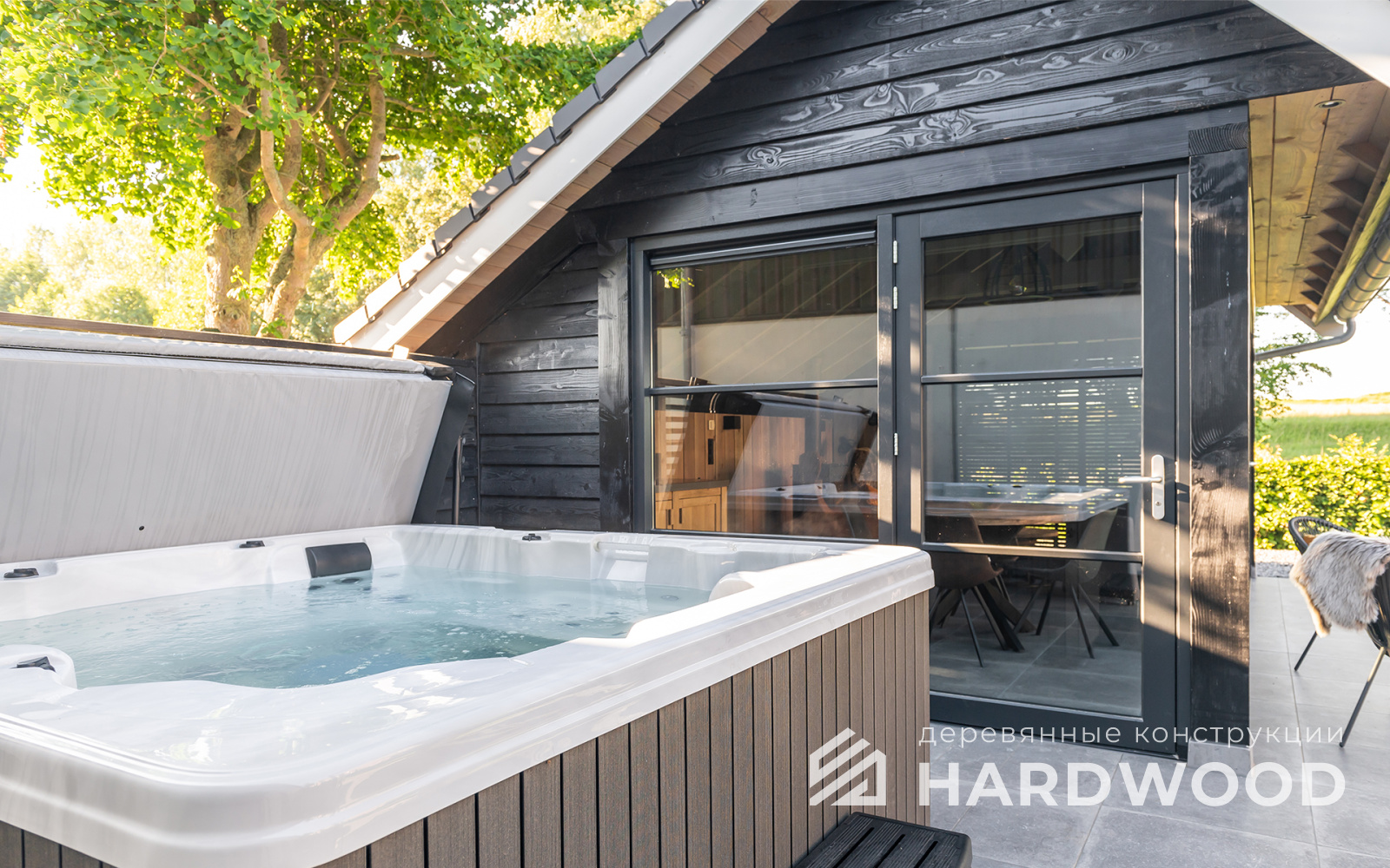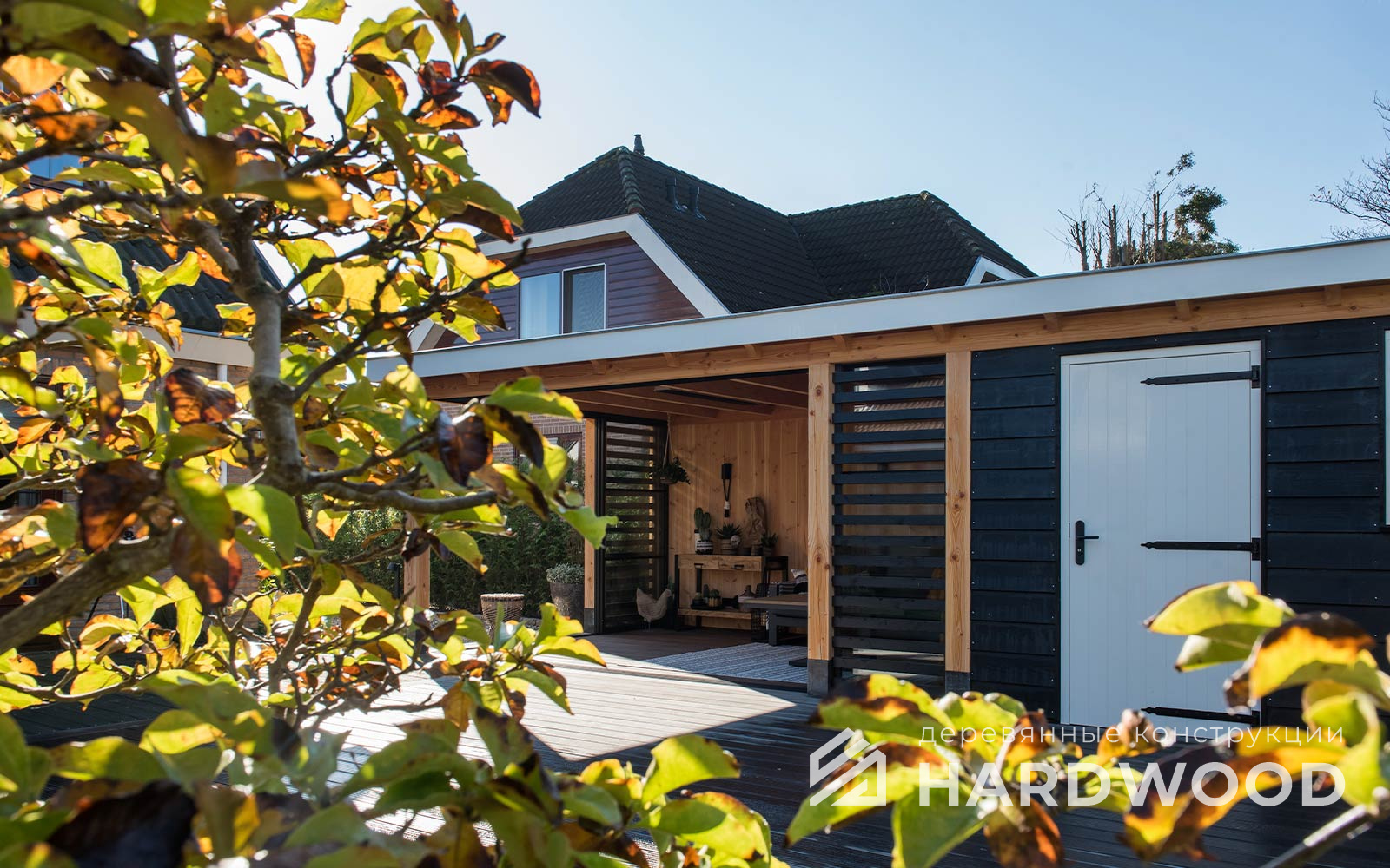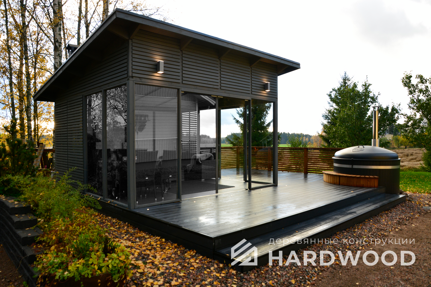 Определитесь с конструкцией и материалами. Для силуэта лофт характерны односкатные или плоские кровли, контраст дерева и металла, минималистичная обрешётка. Если важен всесезонный комфорт — подумайте о частичном остеклении, ветрозащите и подсветке; для летнего формата достаточно открытого павильона с навесом.