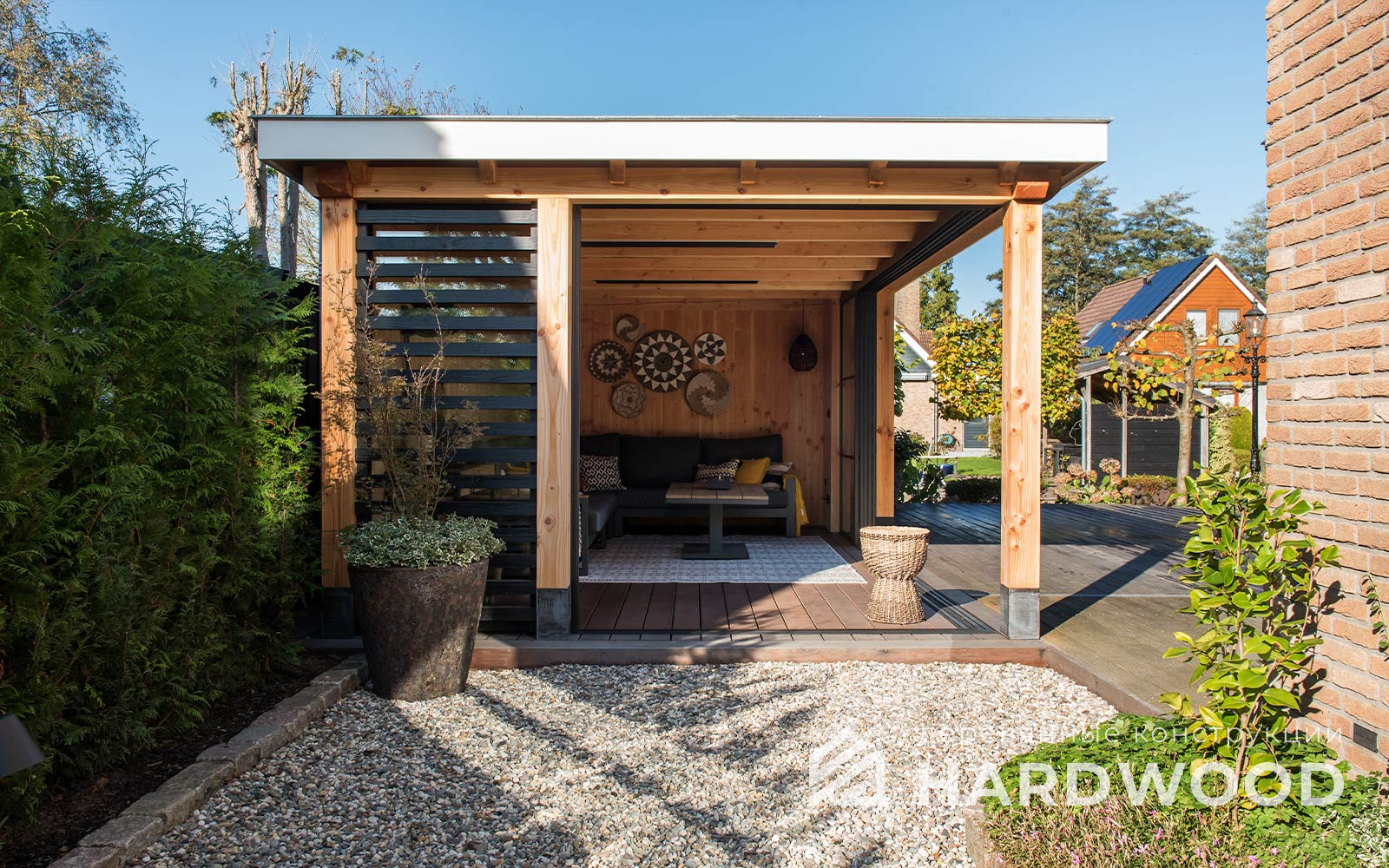 Наконец, это сильная визуальная концепция: беседка-лофт подчёркивает архитектуру участка, добавляет «вау-эффект» и при грамотном подборе отделки не выходит из моды. Это тот редкий случай, когда дизайн и практичность не спорят, а дружат.