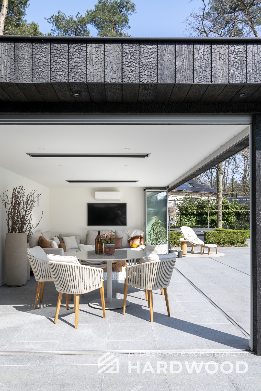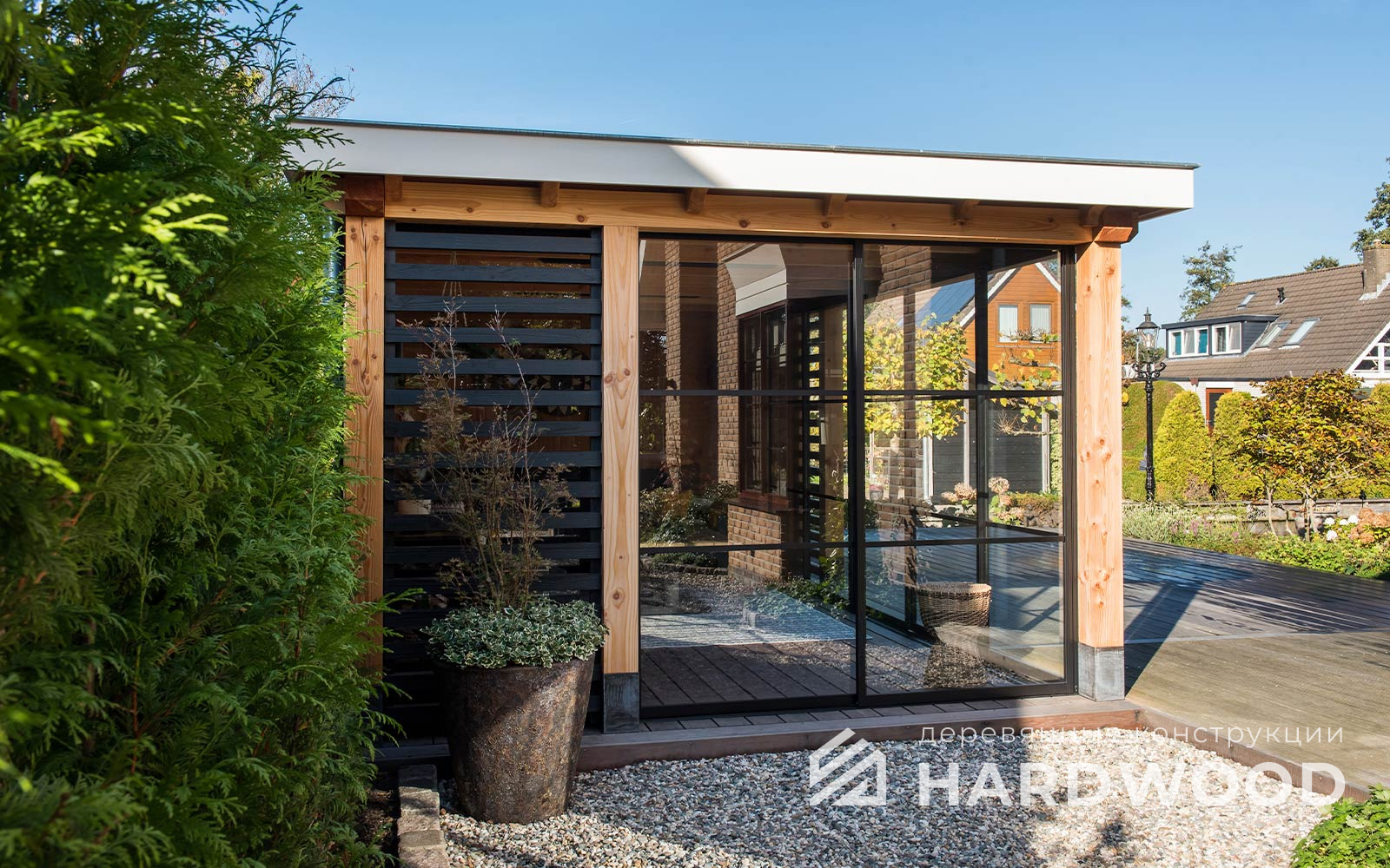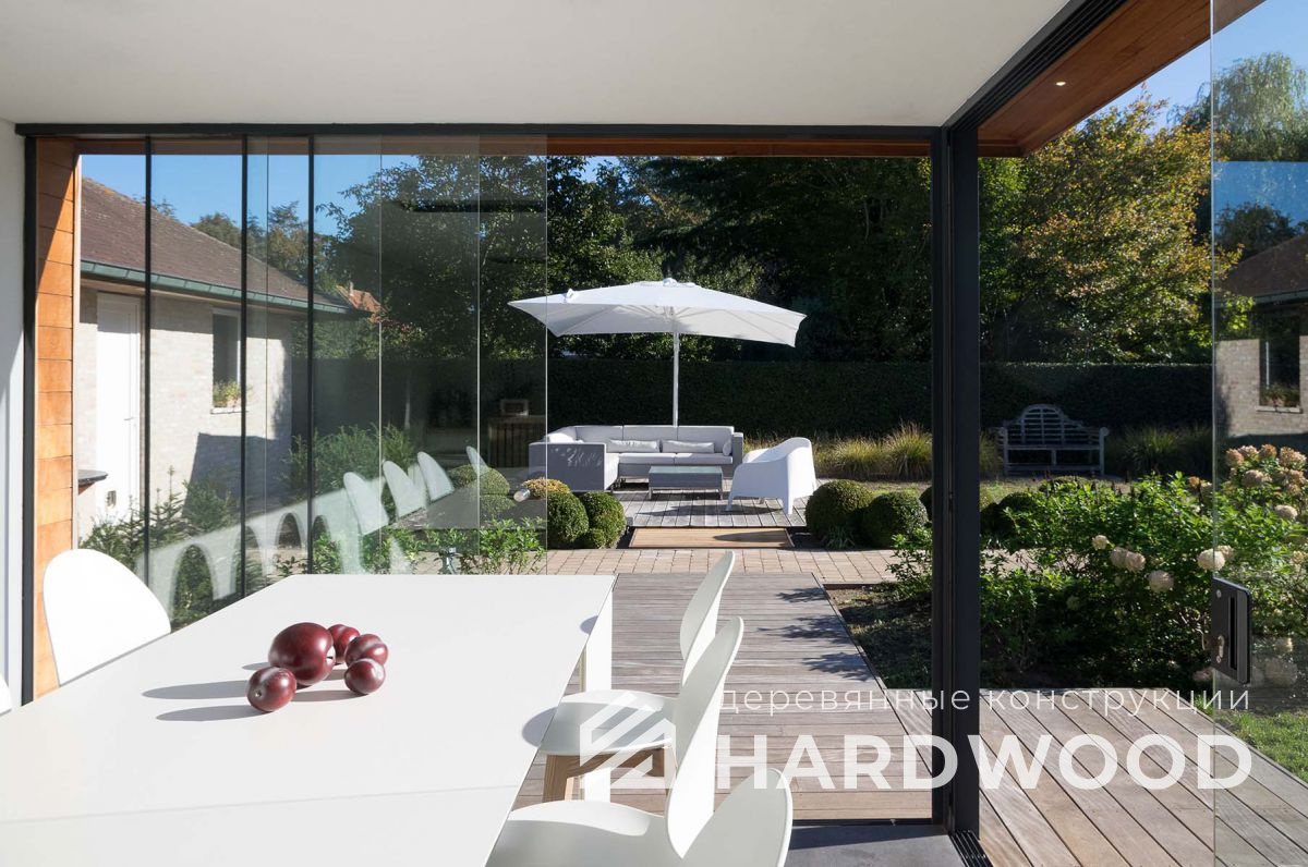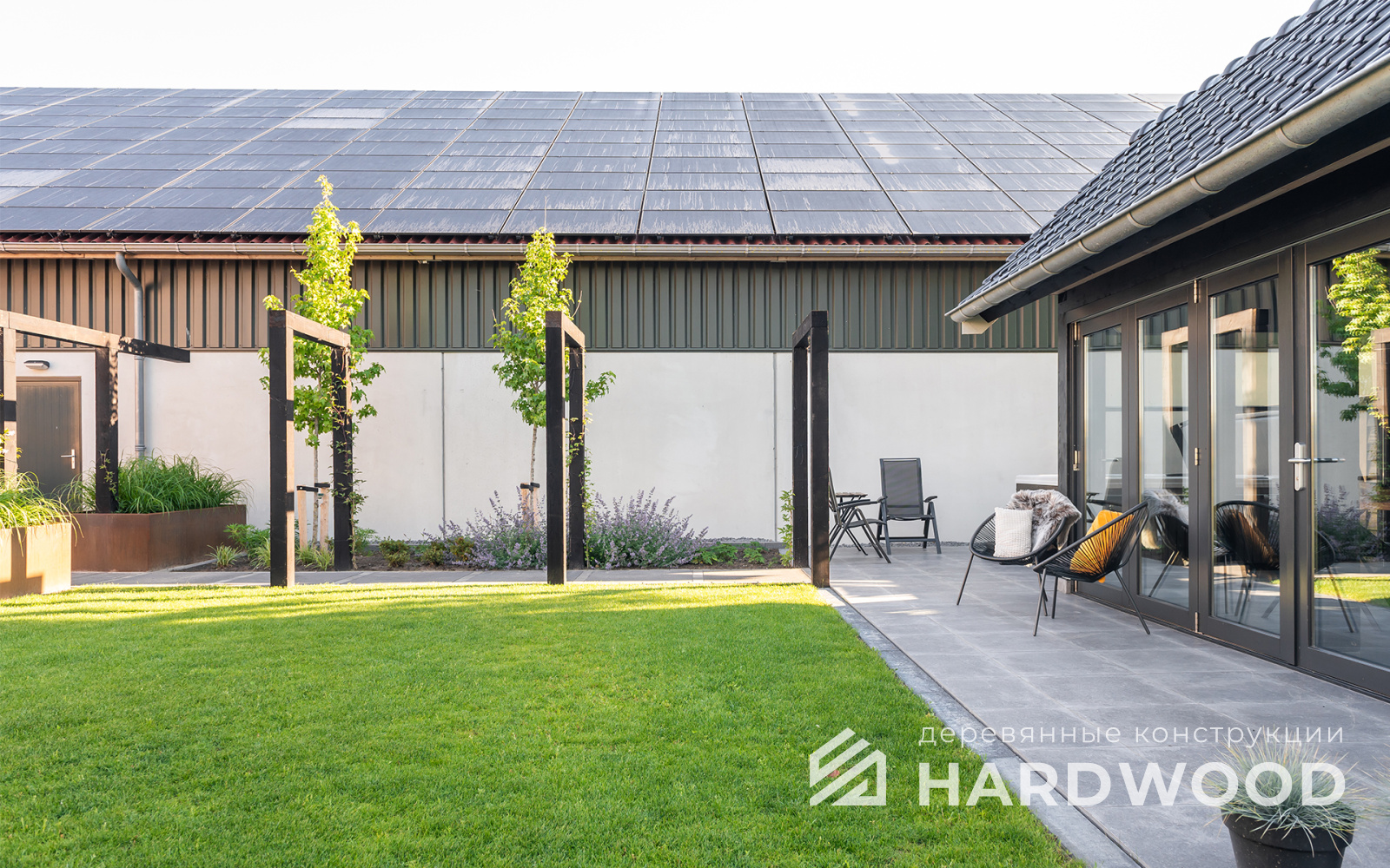 Такой подход особенно выигрышен на участке: конструкция не перегружает пространство, хорошо проветривается, быстро прогревается солнечным светом и гармонирует как с современным домом, так и с природным окружением. По сути, это ваша «микро-терраса-лофт» с возможностью интегрировать зону барбекю, хозблок и всё, что нужно для отдыха.