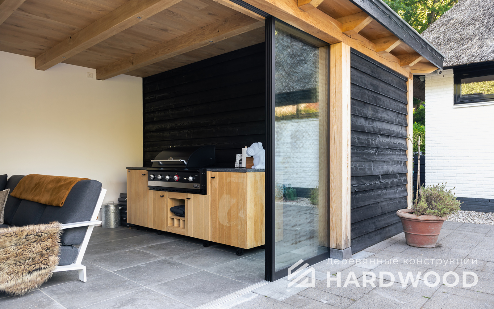 Заранее заложите «узлы» и коммуникации. Барбекю-зона требует учёта дымохода, безопасных расстояний, пожаростойких поверхностей и удобной логистики (мойка, столешницы, хранение). Чем раньше эти решения попадут в проект, тем аккуратнее и технологичнее будет реализация.