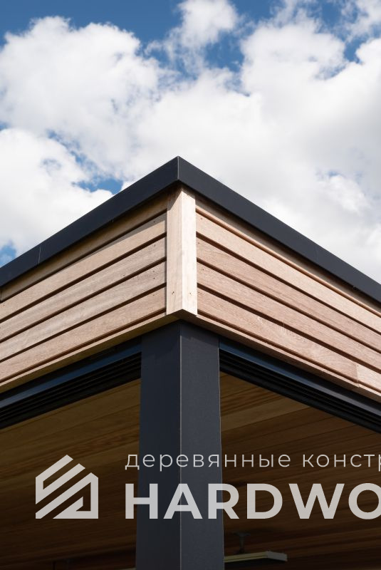 Беседка-лофт — это лаконичная конструкция с акцентом на индустриальный стиль: открытое пространство, металл, дерево, широкие проёмы, минимализм в дизайне и максимум воздуха.